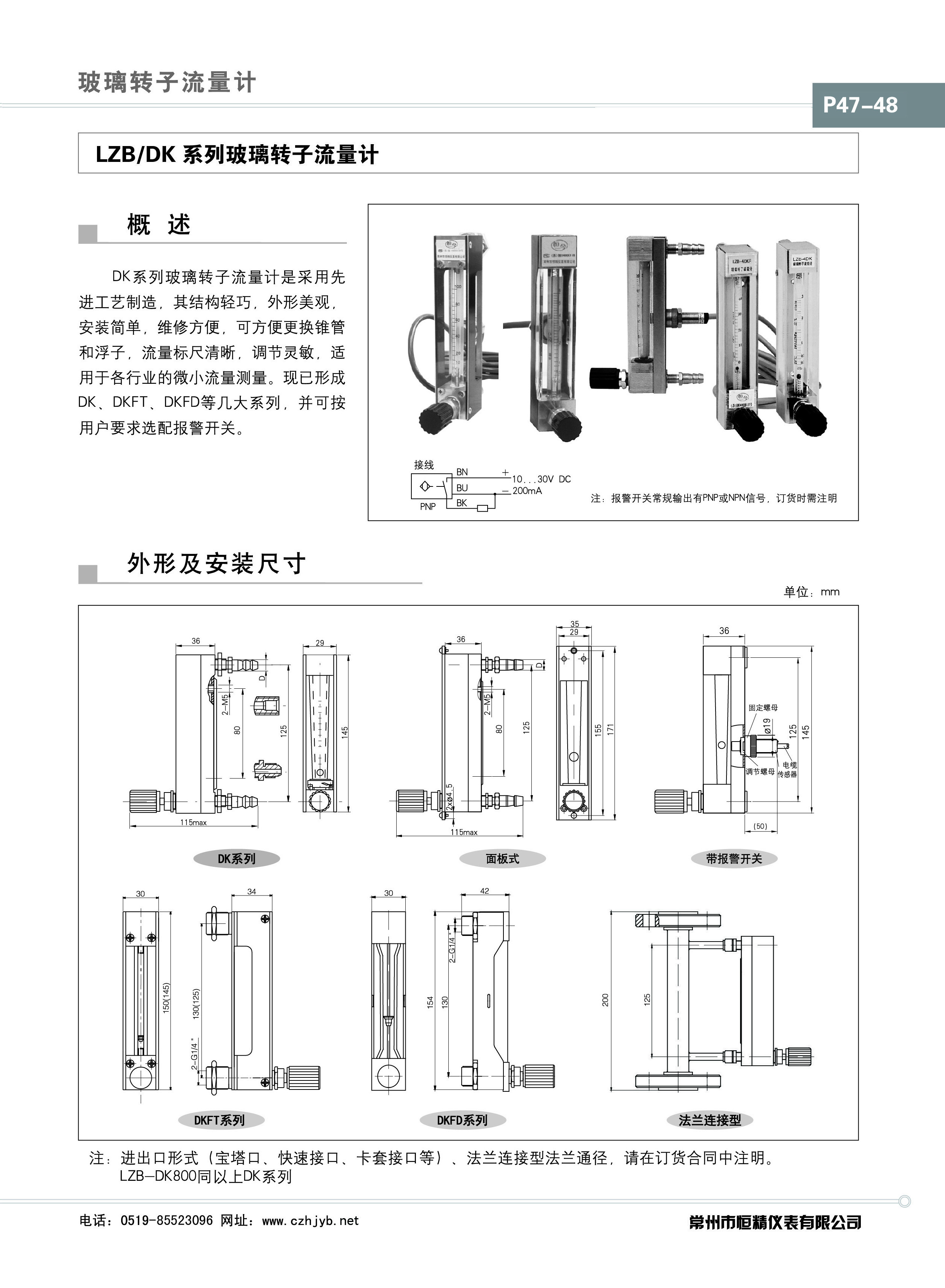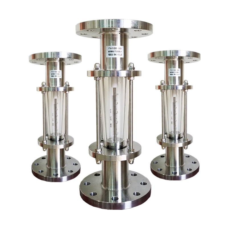 玻璃轉子流量計廣泛應用于化工、石油、輕工、醫藥、環保、食品計量、科研等部門測量單相非脈動流體(液體或氣體)的流量。耐腐蝕玻璃轉子流量計具有較強的耐腐蝕性,可檢測酸(氫氟酸除外)、堿、氧化劑等腐蝕性氣體或液體的流動,適用于化工、制藥、造紙、污水處理等行業。不銹鋼玻璃轉子流量計主要由一個錐形玻璃管擴大從下到上,不銹鋼浮上下移動的流量。當流體流過錐形管從下到上,產生的升力年代流體動能的浮動和浮力流體使浮動起來。當升力S和浮力A之和等于浮子本身的重力G時,浮子在一定高度處于平衡穩定狀態。錐管上的刻度表示流體的流量值。玻璃轉子流量計錐管為光滑的內壁管,直徑在DN15以上的流量計通過導桿上下運動,保持穩定。流量計錐管內壁有三根導筋,保持浮子穩定,直徑小于DN10的流量計與軟管連接,并配有針形流量調節閥。DN15以上流量計與法蘭連接。