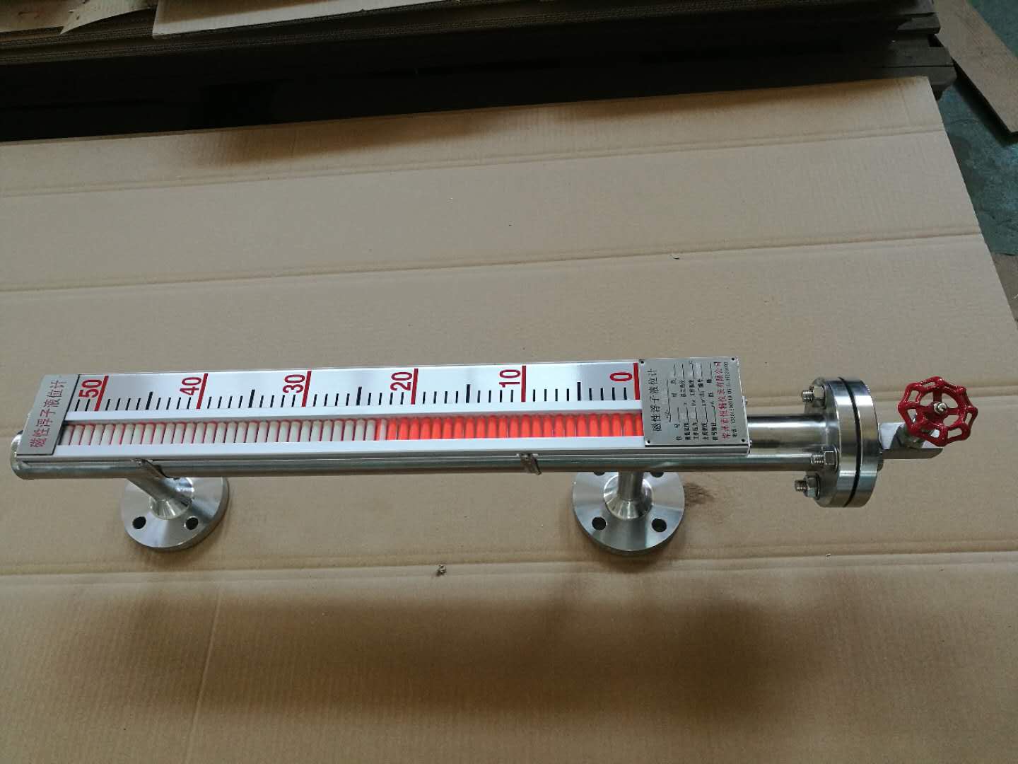 磁翻板液位計是公司的創新設計的新一代磁翻轉板液位計,產品技術先進,結構合理,顯示清晰、直觀,通過身體,磁翻柱(由紅色、白色磁小翻轉列組成),浮動,法蘭蓋,用于各種液體容器水平測量。主體內也有磁浮體,隨著液位的升降而上下移動。與此同時,它們驅動主體內的雙色磁性板翻轉。當有液位時,它變成紅色,當沒有液位時,它變成白色。紅色和白色的線代表水平。這樣液位指示就顯得更清楚了。適用于高溫、防爆、防腐、食品飲料等行業。密封和防泄漏產品可以實現高,在高溫、高壓、高粘度、強耐腐蝕的情況下安全可靠的液位測量,測量的整個過程沒有盲區,顯示、直觀的閱讀,和大測量范圍,與液位報警、控制開關,可實現液位報警和控制或上限和下限的位置,配上液位發射器就可以是水了。將邊界信號轉換為4-20madc標準信號,實現遠程檢測、顯示、記錄和控制。UZ系列磁力翻轉式液位計廣泛應用于電力、石油、化工、冶金、環保、船舶、建筑、食品等行業生產過程中的液位測量與控制。翻轉板框主體以外的磁場翻轉板液位計刺激的行動主體內的浮子(定向磁源,根據不同的媒體和壓力)董事會和翻轉顯示紅色和白色的顏色,表明不同液面高度與浮子的運動。指示器左側有醒目的刻度,使液位指示更加清晰。