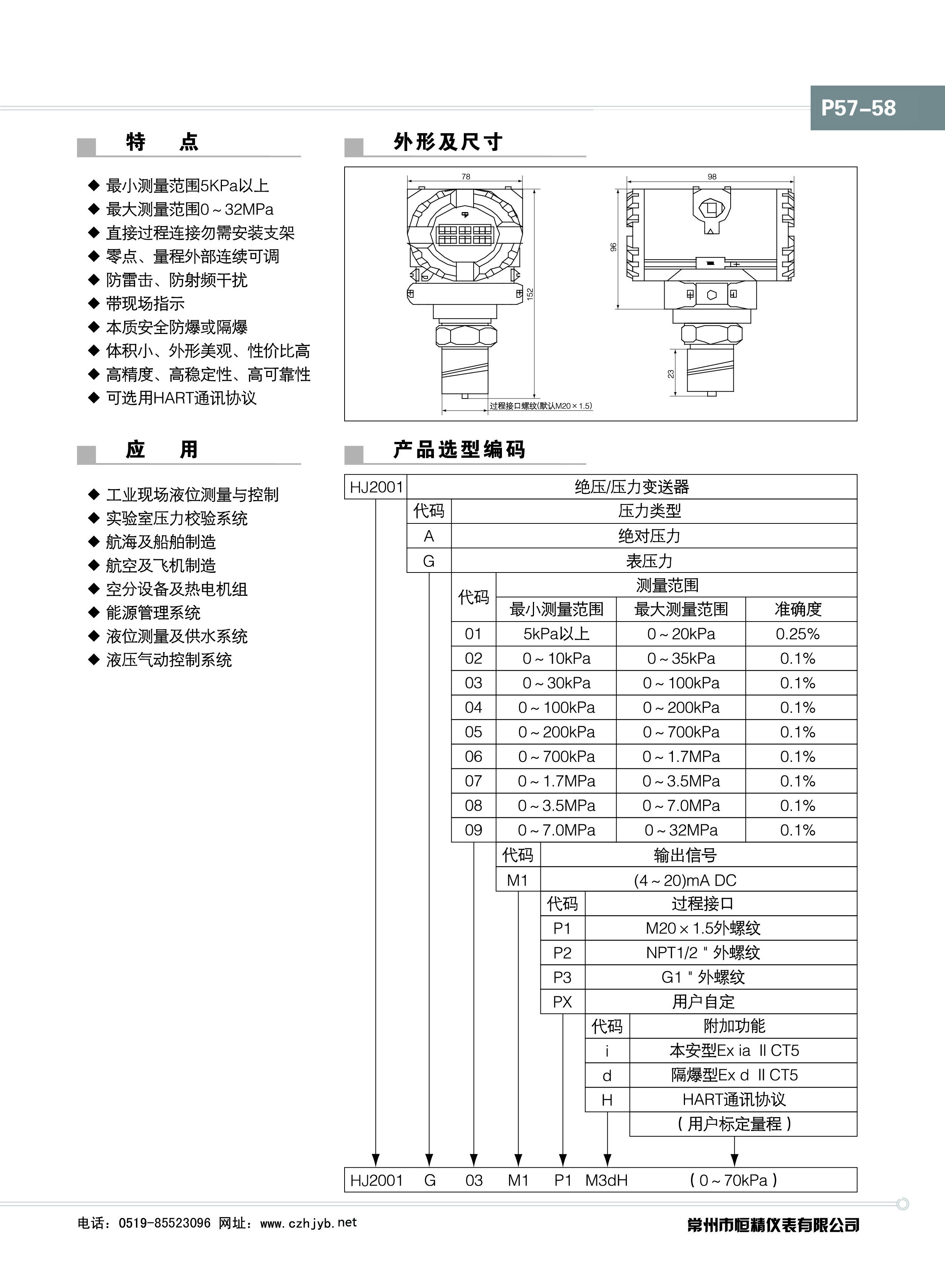 壓力變送器選用進口敏感壓阻元件,標準隔爆鑄鋁外殼,配以優(yōu)良的運放電路,具有極好的穩(wěn)定性,可靠性和卓越的抗干擾能力,全天候使用,能適應(yīng)各種惡劣環(huán)境,是工業(yè)領(lǐng)域安裝成本最低的壓力傳感器之一。同時顯示表頭可選,方便現(xiàn)場調(diào)試。壓力變送器用于測量液體、氣體或蒸汽的液位、密度和壓力,然后將其轉(zhuǎn)變成4~20mA DC信號輸出。3051智能壓力變送器可與HART手操器相互通訊,通過它進行設(shè)定,監(jiān)控。智能型液晶表頭采用智能按鍵可修改量程、顯示單位、溫度等等,壓力變送器過壓強度高,穩(wěn)定性好。輸入量程為0~0.25KPa,0~10KPa,0~40KPa。